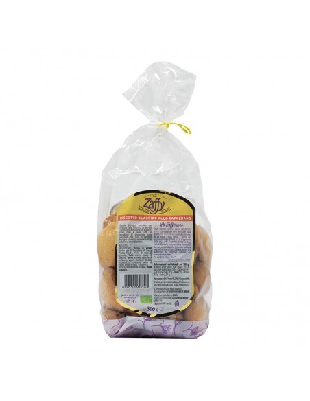 Biscotto biologico arricchito con zafferano Zaffy, utilizzato da sempre in pasticceria e in cucina per esaltare i sapori dolci e salati. Tutti gli ingredienti di produzione sono selezionati con cura; il prodotto biologico garantisce assenza di OGM, coloranti e aromi di sintesi. Ideale sia da accompagnamento che a colazione per rallegrare le giornate.