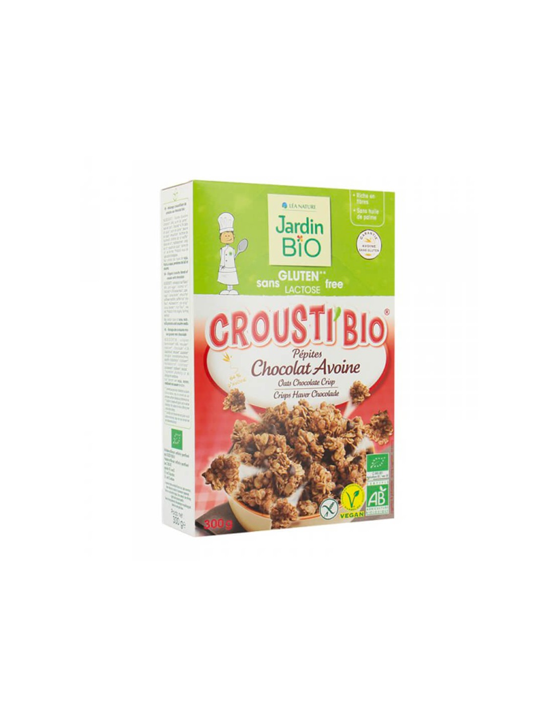 Farina d'avena integrale * 64%, zucchero di canna *, olio di cocco *, cioccolato * 4,5% (massa di cacao *, zucchero di canna *, burro di cacao *, emulsionante: lecitina di girasole) riso soffiato * (farina di riso *), maltodestrina *, sciroppo di riso *, cacao in polvere *, farina di riso *, sale marino.