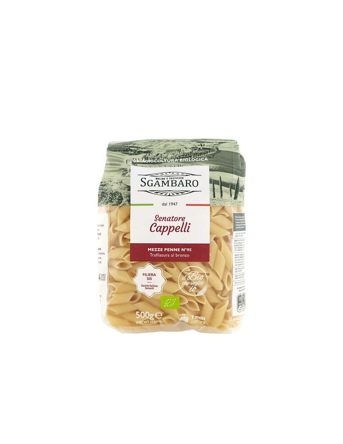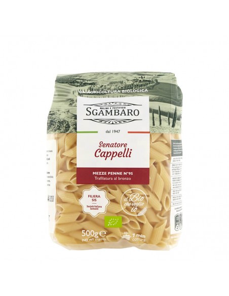 Pasta di semola di grano duro biologico. Mezze penne Senatore Cappelli.
