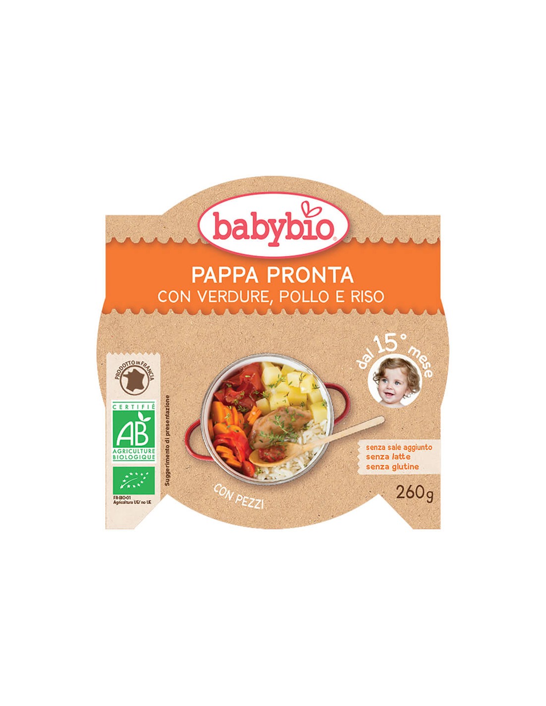 Pappa pronta completa pratica e divertente in comodi piattini. Per un pranzo in completa autonomia. Con piccoli pezzi per accompagnare il tuo bambino nelle prime fasi della masticazione. Babybio ha selezionato accuratamente tutti gli ingredienti provenienti da agricoltura biologica scegliendo come metodo di preparazione la cottura a vapore.