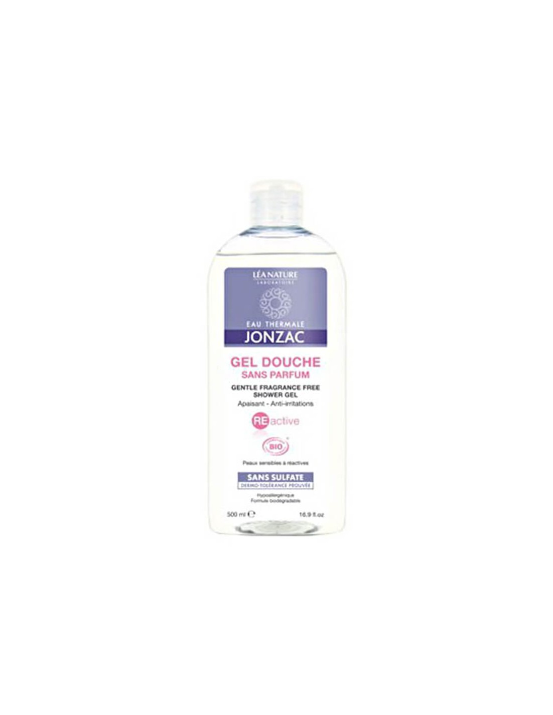 Gel doccia formulato con: Acqua termale di Jonzac 10%, glicerina vegetale idratante 2%.
