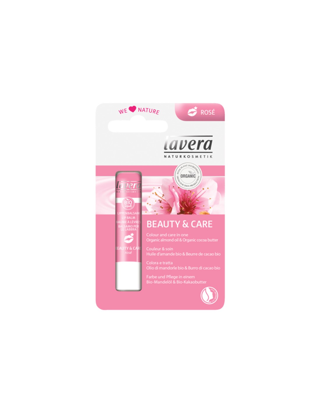 Con latte di Mandorla e burro di Cacao, il Balsamo labbra rosé idrata e protegge le labbra colorandole con una delicata tonalità di rosa. Con il trattamento quotidiano idrata e nutre profondamente.