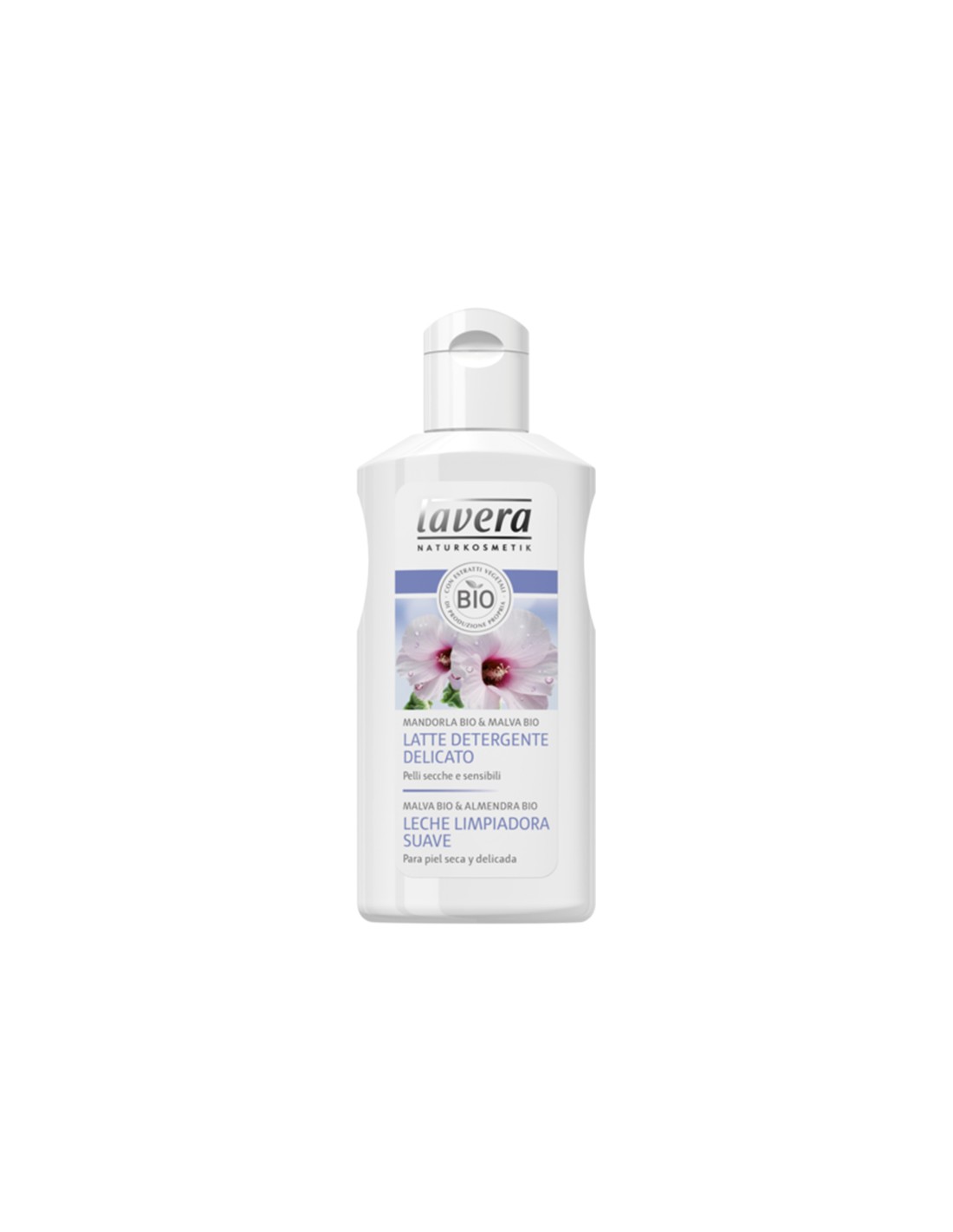 Il Latte detergente delicato, arricchito con olio di Mandorle ed estratti di fiori di Malva biologica, deterge ed elimina le tracce di trucco in un solo colpo. Adatto alle pelli più sensibili, apporta sostanze nutrienti e idratanti.